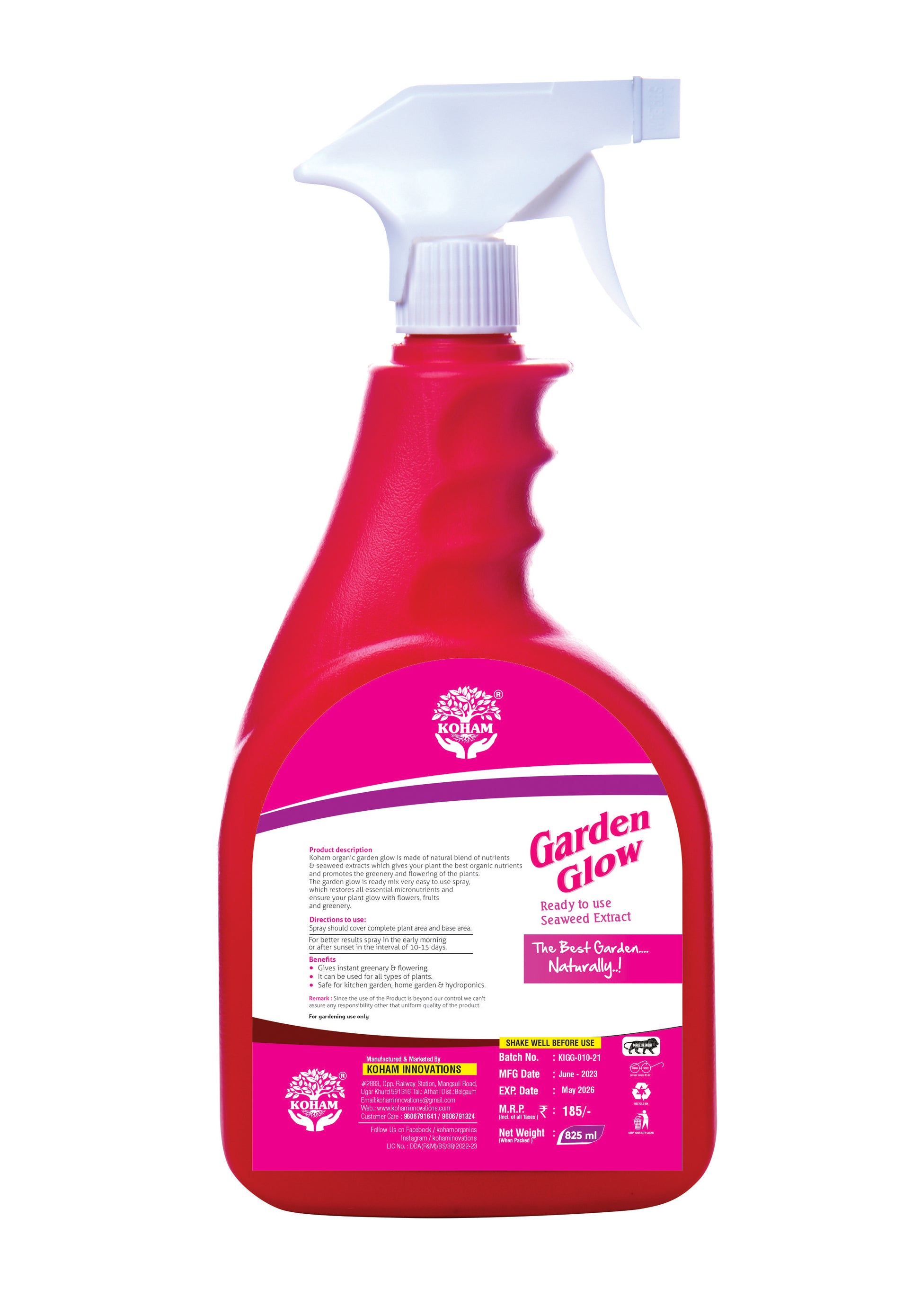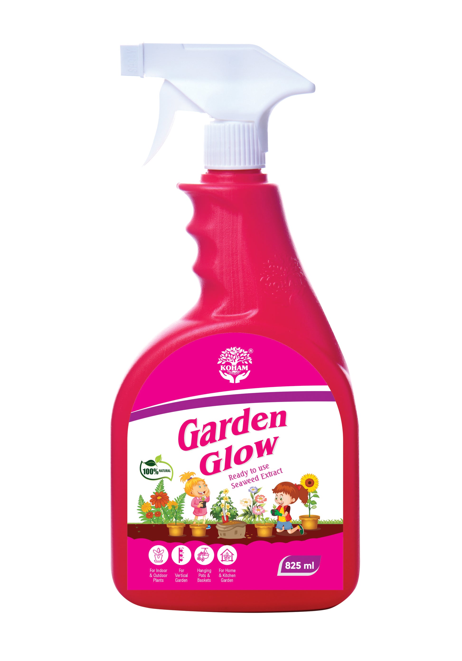 KOHAM GARDEN GLOW | Ready To Use | 825 ML Liquid | Plant Growth Promoter | Seaweed Extract | Special Formula for Flowers | Liquid Plant Food | Natural Nutrition | Outdoor Plants | Organic Nutrients