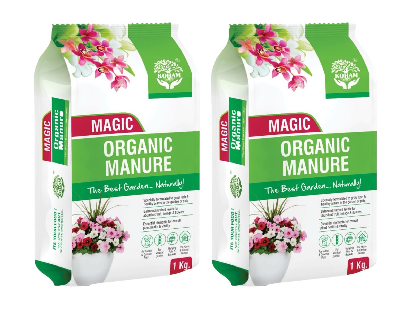 Koham Magic Manure provides complete plant nutrition for your garden. It contains a distinct blend of natural nutrients that aid in the strengthening of roots and the improvement of soil. Provides an excellent amount of organic matter to the soil. Provides balanced nutrition for plants to produce stronger, healthier foliage and vibrant flowers and fruits.